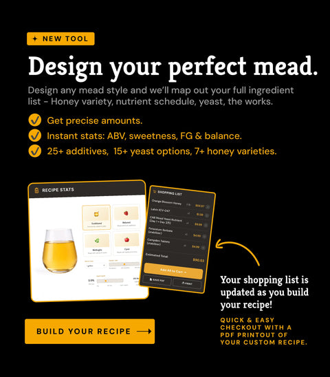 Perfect for anyone learning how to make mead at home, this all-in-one DIY Mead Kit includes reusable equipment, high-quality ingredients, and clear instructions for brewing your first batch. Beyond the kit, all you’ll need is 12.5 lbs of honey — any style you like. Whether you prefer wildflower, orange blossom, tupelo, or your own local honey, this home mead kit works with it all.