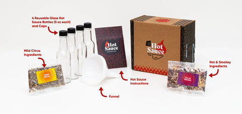 Ever wondered how to make hot sauce at home? Our DIY hot sauce kit simplifies the process, making it easy and fun to make your own hot sauce. With easy-to-follow instructions, you'll craft flavorful, homemade hot sauce without any preservatives or artificial ingredients. Experience the joy of creating unique sauces right in your own kitchen!