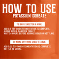 After fermentation is complete, Potassium Sorbate (a yeast growth inhibitor) & Potassium Metabisulfite (sterilant) is added to the carboy. Together, they stabilize the beverage so you can then add sweeteners like honey, maple syrup or fruit concentrates to the carboy. Potassium Sorbate prevents the yeast from re-fermenting in the presence of added sugars - so the sweetness remains in the finished product instead of being converted into alcohol!